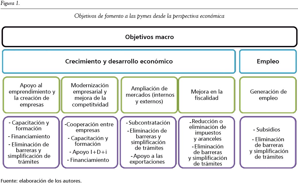 Aunque la implementación de políticas de impulso a las pymes varía de un país a otro en función de sus necesidades y características específicas, por lo general dichas políticas tienden a estar alineadas con objetivos macroeconómicos como la creación de empleo, el desarrollo económico y el crecimiento de las exportaciones; con objetivos sociales como la redistribución de la renta o ingreso y el alivio de la pobreza, y con objetivos de eficiencia como la corrección de externalidades, la eliminación de barreras de acceso al mercado, la reducción de las asimetrías de información y la promoción de la innovación (Harvie y Lee, 2003). Países en desarrollo en África, Asia y América Latina están haciendo importantes esfuerzos por desarrollar políticas de fomento para las pymes, mientras que países avanzados como Estados Unidos, Japón y algunos europeos han hecho grandes progresos en este sentido y proporcionado apoyo continuo a iniciativas de desarrollo económico (Kongolo, 2010).