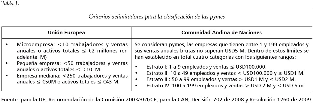 Palabras clave: pymes, Comunidad Andina de Naciones, Unión Europea, política pública.