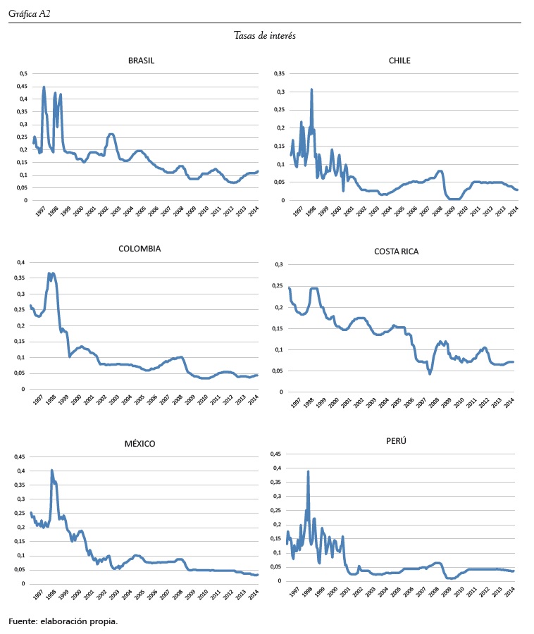 15 Adviértase que si bien en Perú hay una correlación negativa entre los tipos de cambio y las tasas de interés, esta no es estadísticamente significativa. Volver