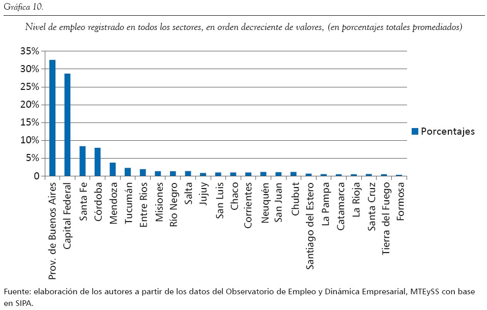 Dois fatores são fundamentais para medir a desigualdade de oportunidades entre os cidadãos das diferentes regiões do país, em função de rediscutir o modelo de desenvolvimento e, consequentemente, repropor suas políticas públicas financeiras e fiscais: o produto bruto geográfico nacional e o emprego formal. Num âmbito estatal marcado por uma mudança de paradigma políticoeconômico e institucional, posterior à crise de 2001, a análise desses componentes em duas décadas tão diferentes como a de 1990 e sua imediantemente seguinte constitui um fator essencial para verificar se existe continuidade ou aprofundamento a respeito da dinâmica desigualadora neoliberal dos anos 1990 até os nossos dias.