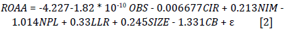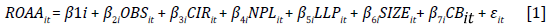 CIR is calculated by dividing operating costs by operating income. Jaouad and Lahsen (2018) draw conclusions about the counterproductive impact of this ratio on operational efficiency, whereas Long (2019) and San and Heng (2013) have contrary findings.