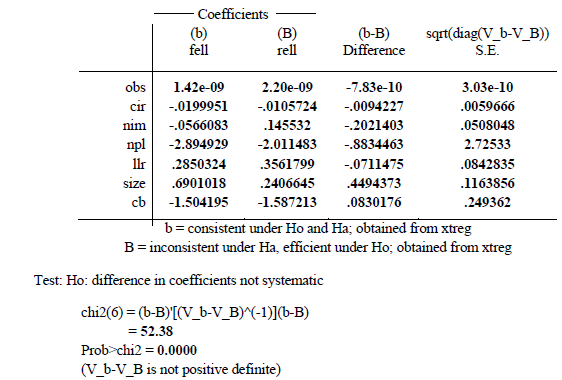 To evaluate the impact of OBS activities, CIR, NPL, NIM, LLR, SIZE, and CB on the ROAA of joint-stock commercial banks, the authors employ the Fixed Effects Model (FEM) and Random Effects Model (REM) using panel data consisting of 100 observations from the ten listed Vietnam joint-stock commercial banks over ten years (from 2013 to 2022). The independent variables are OBS, CIR, NPL, NIM, LLR, SIZE, and CB, and the dependent variable is ROAA. Subsequently, the Hausman test is conducted to choose between the FEM and REM models, and the results suggest that the REM model is more appropriate. Therefore, the REM model is chosen to run the official data. Then, to test for model deficiencies, the authors perform the Breusch and PLM tests for random variance errors. If Prob > chibar2 = 1.0000 > significance level 5 %, a = 0.05, then the hypothesis is accepted, and it is concluded that the model does not experience the phenomenon of random variance errors changing. Lastly, the authors employ the GLS model to correct deficiencies and present the results.