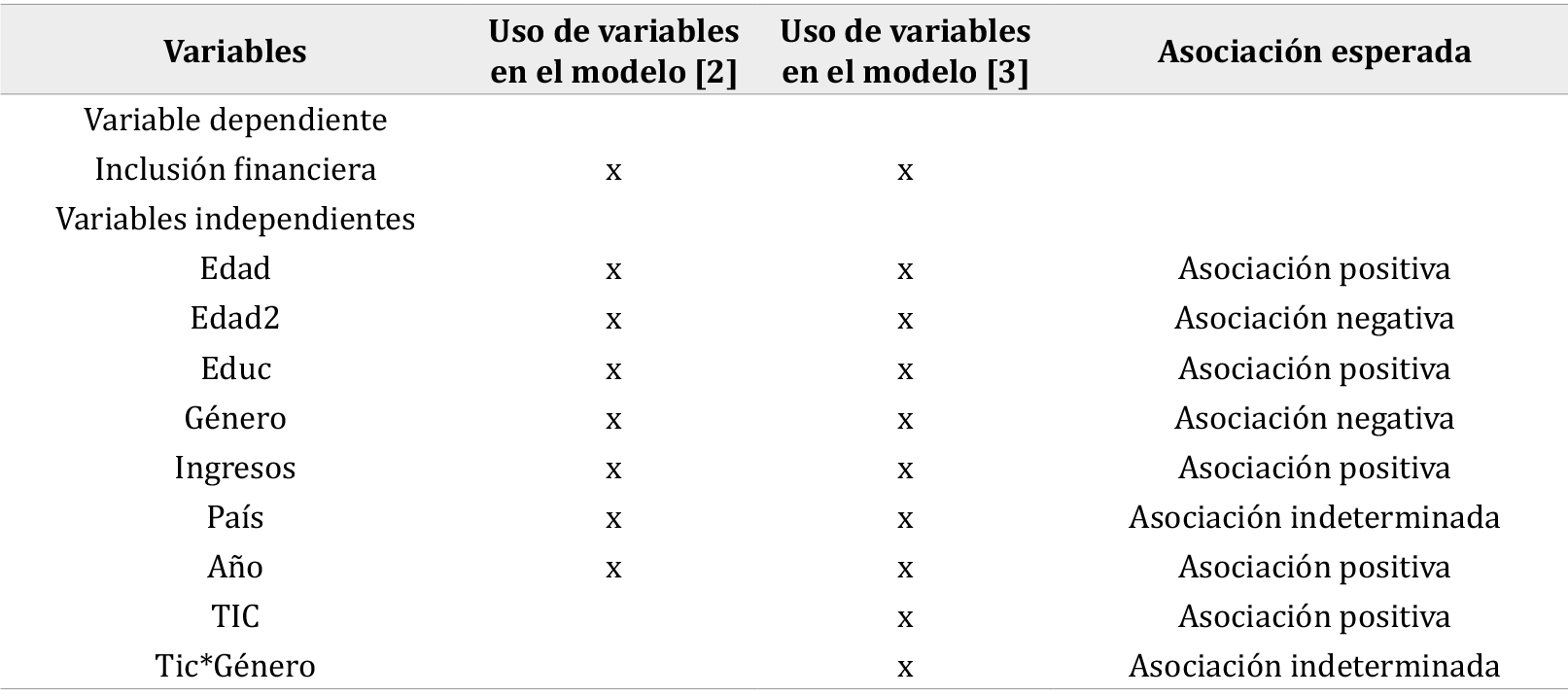 Tabla 2 Variables por utilizar en las regresiones logísticas [2] y [3]