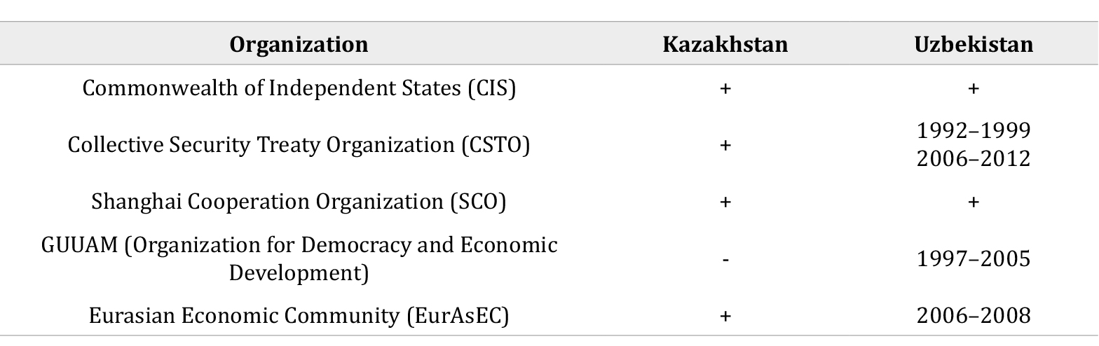 Table 3. Membership of Kazakhstan and Uzbekistan in the Regional Organizations