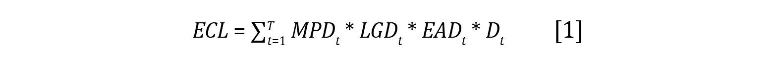 Hablar de un modelo se refiere a un enfoque cuantitativo que aplica conceptos y supuestos estadísticos, económicos y financieros para procesar datos de entrada en estimaciones cuantitativas. En el marco de algunos modelos existentes, el ECL propuesto por KPMG (2017) se desarrolla a través de la siguiente fórmula detallada en la ecuación 1.