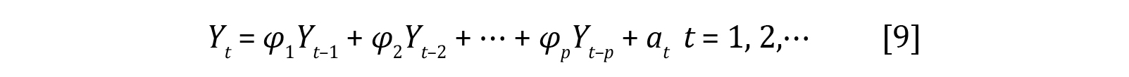 De esta forma, un modelo autorregresivo puro de orden p se puede especificar como aparece en la ecuación 9: