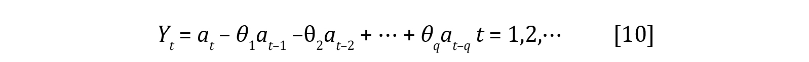 Mientras que un modelo puro de media móvil de orden q, como se detalla en la ecuación 10: