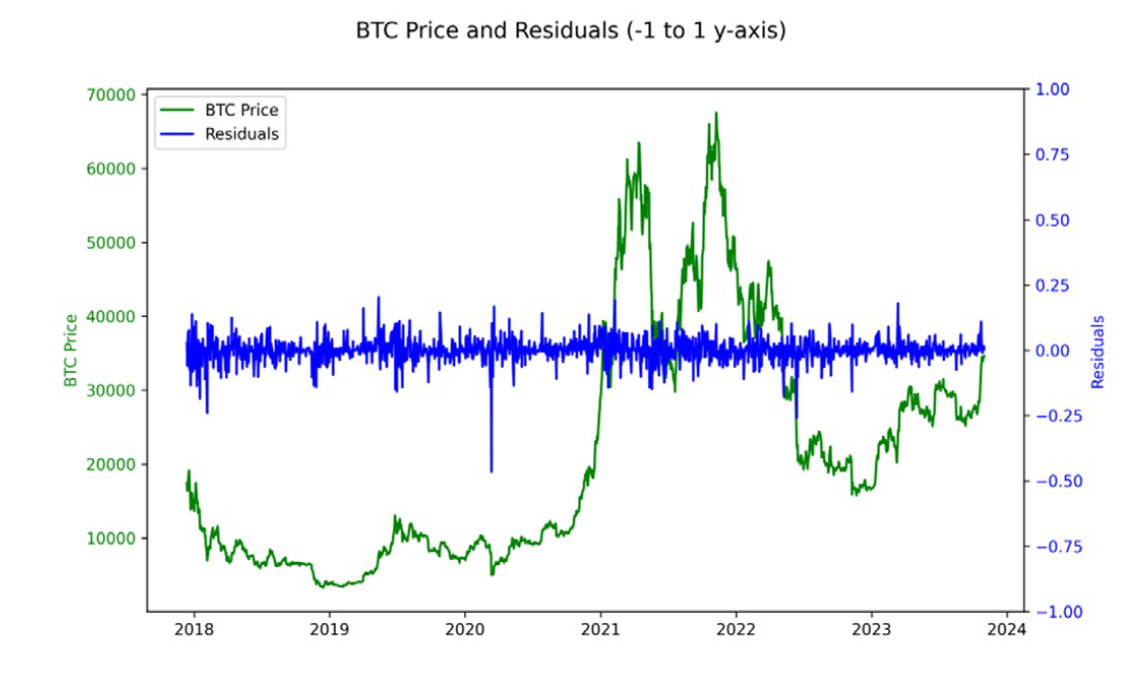 To determine whether volatility shocks diminish progressively over weeks or months, we fit a FIGARCH model and interpret the fractional parameter as evidence of medium-term memory in BTC's risk. Next, the PARCH power term distinguishes the impact of small versus large events, highlighting the outsized role of extreme moves in driving conditional variance. We used information criteria (LL, SIC, and AIC) to determine the most suitable model for describing our sample. We observe that the EGARCH technique is the most suitable model for capturing the dependence in the conditional variance. Finally, we synthesized these univariate insights within a DCC-MGARCH framework, estimating time-varying correlations across all assets to pinpoint the predictive dependence and gain a better understanding of the comovement of BTC and asset/commodity returns, as well as the correlation dynamics of the standardized residuals. Taken together, these analyses not only characterize BTC's unique risk profile but also identify the precise conditions under which it can serve as an effective diversification tool for downside protection.