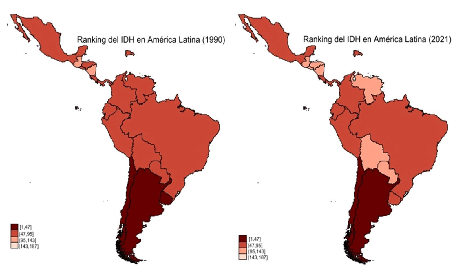 Figura 1 IDH de América Latina en 1990 y en el 2021