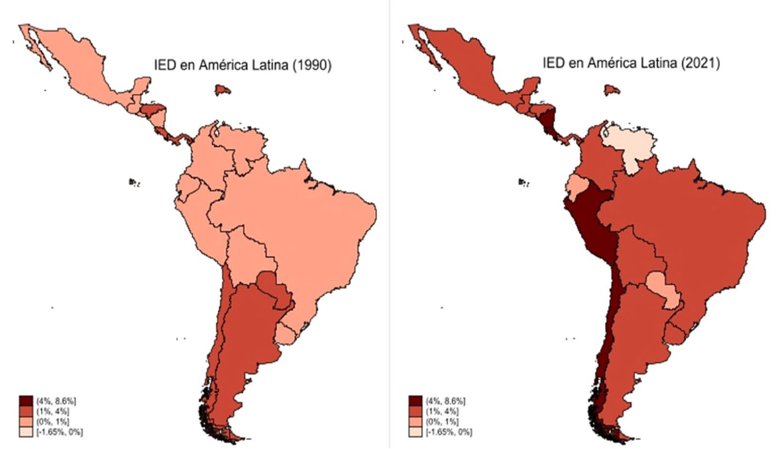 Figura 2 IED de América Latina en 1990 y en el 2021