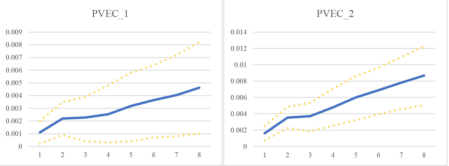 Inicialmente, se hicieron estimaciones con las variables no estacionarias, sin diferenciar, para no perder la relación implícita de largo plazo de estas, bajo la especificación especificación del PVAR. Luego, se confirmó la robustez de los resultados modelando de forma explícita las relaciones de largo plazo a través de un PVEC. Se realizó la prueba de Johansen (1991), la cual arrojó que las variables endógenas presentan al menos un vector de cointegración en el largo plazo.