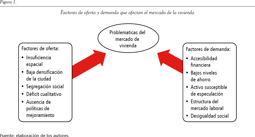 En primer lugar, realizamos un análisis de los factores de oferta y los factores de demanda. Los primeros hacen referencia a problemas de índole estructural, es decir, de largo plazo y que resultan de condiciones propias del bien en cuestión (la vivienda) o de fenómenos históricos que repercuten en la disponibilidad de vivienda actual. Y los factores de demanda se refieren a problemas de corto plazo y de decisiones de consumo de vivienda por parte de los hogares (más allá de su disponibilidad). Como se vislumbró en las secciones anteriores, los incentivos a la demanda han predominado sobre los incentivos a la oferta en Bogotá, principalmente porque los segundos son más difíciles de efectuar y generalmente no son alcanzables a corto plazo.