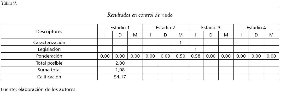 En lo atinente a la variable ruido, las empresas, aunque conocen la proveniencia de estos, no poseen programas para su control; solo se limitan a establecer las barreras básicas de disminución de sonidos establecidas por la ley. La calificación es 54,17 en esta variable (tabla 9).